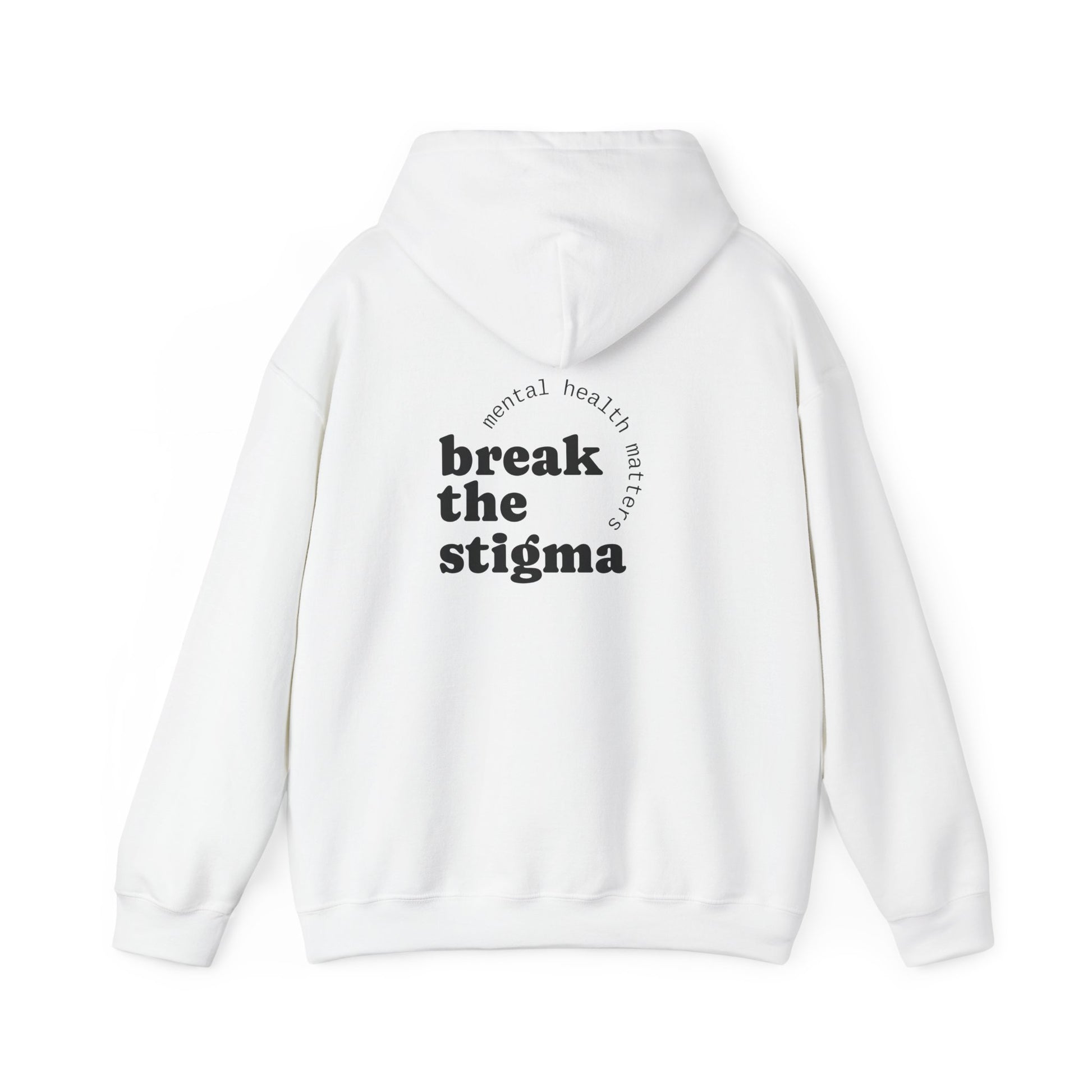 This white unisex hoodie is designed to break the stigma surrounding mental health awareness. It provides a cozy and warm feel, making it perfect for the upcoming winter season. Ideal for those who want to raise awareness and show support for mental health struggles.